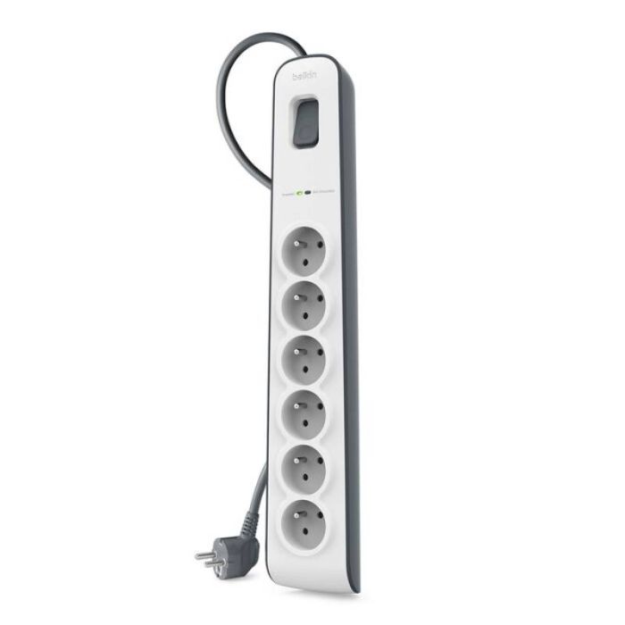 Multiprises BELKIN – Nombre de prises: 6 prises d’alimentation – Avec interrupteur – Couleur: noir et Blanc .